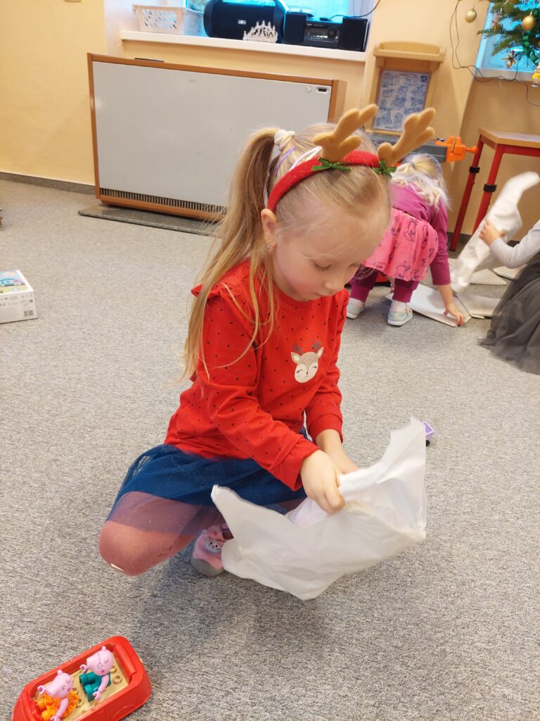 Čekání na Ježíška je pro děti ve školce jedním z nejkrásnějších okamžiků Vánoc. Když pak přijde chvíle rozbalování, radost a nadšení neberou konce. Děti si hned začnou s novými dárky hrát a užívají si společné chvíle plné smíchu a vánoční pohody.