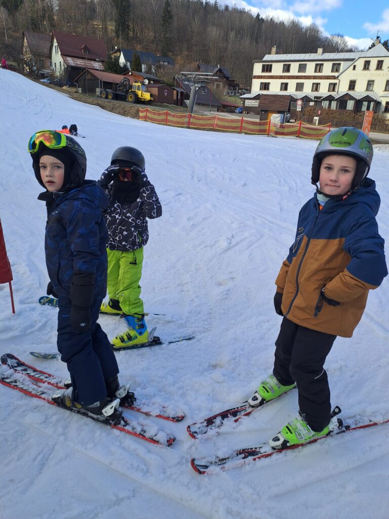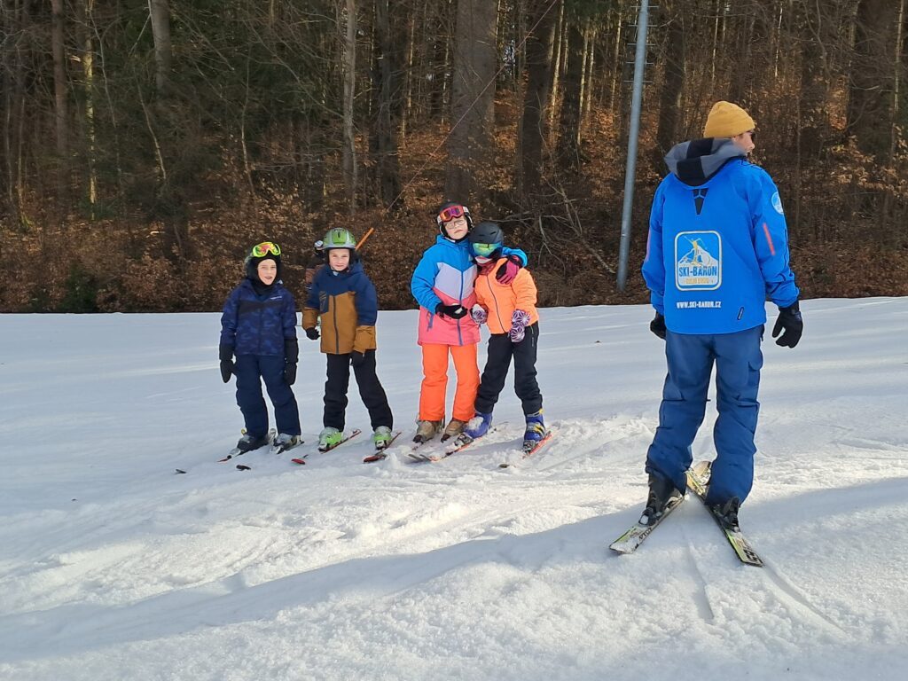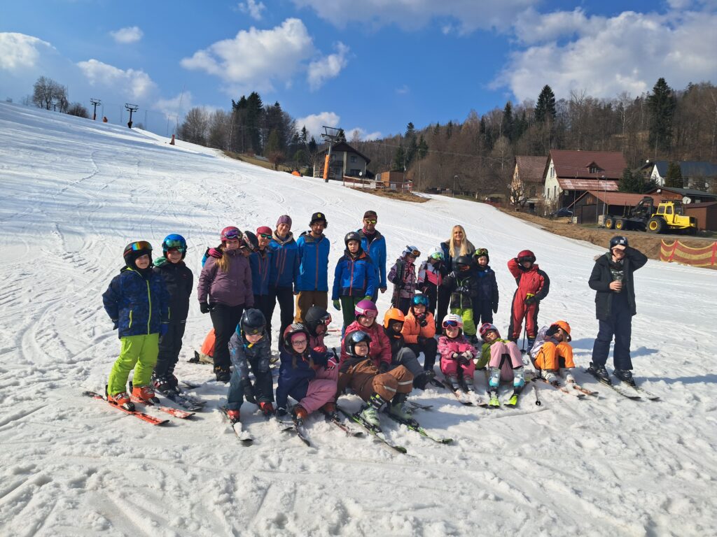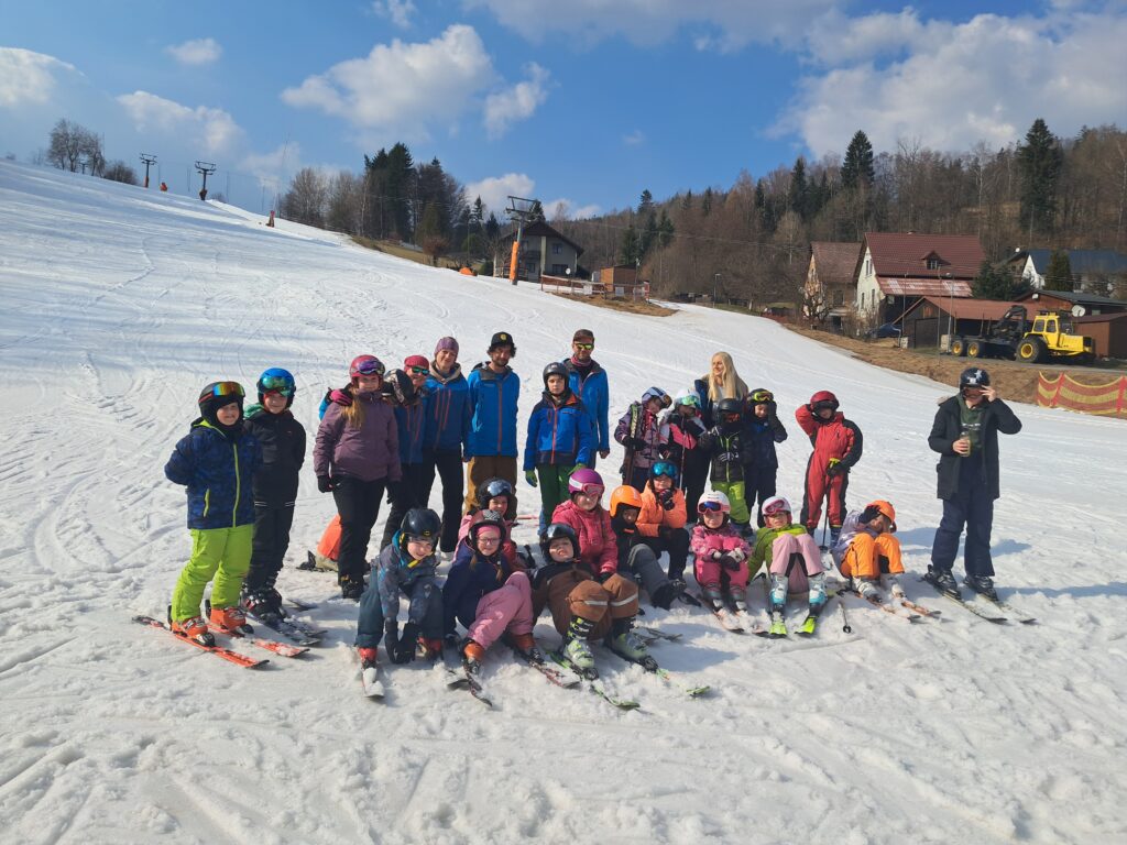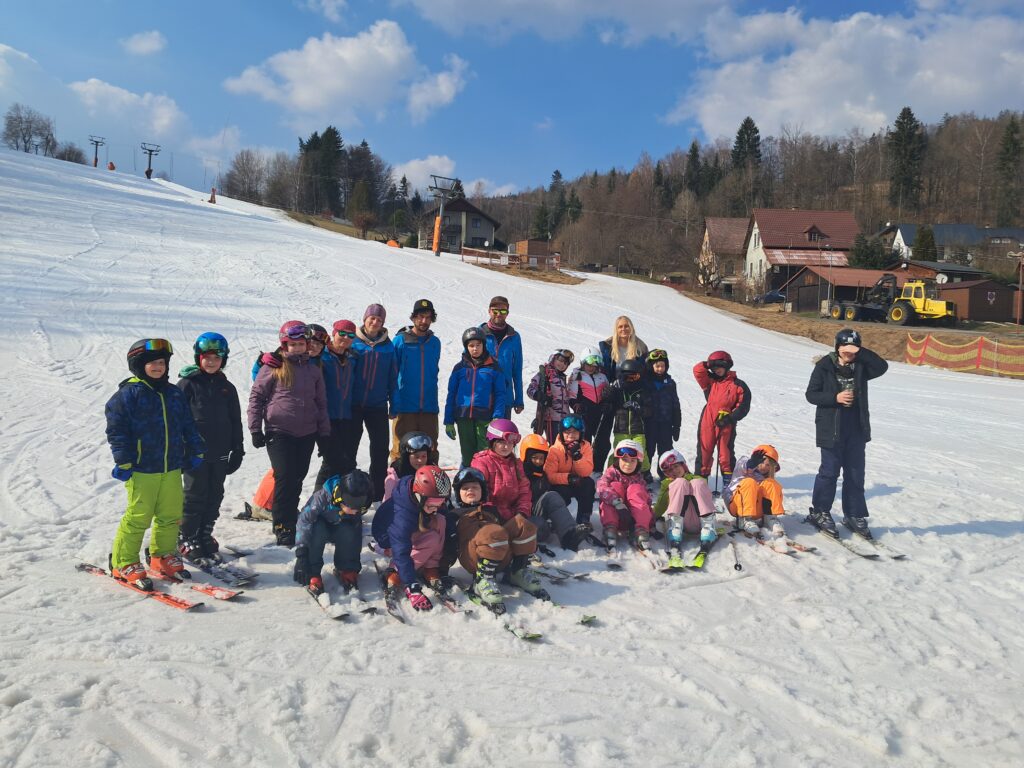 Letos jsme se už podruhé zúčastnili lyžařského kurzu v Dolním Dvoře s lyžařskou školou SKI-BARON. I přes jarní počasí byla sjezdovka skvěle připravená a děti si lyžování naplno užily. Některé si vyzkoušely i snowboarding a všechny udělaly během týdne velký pokrok.