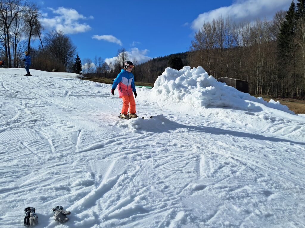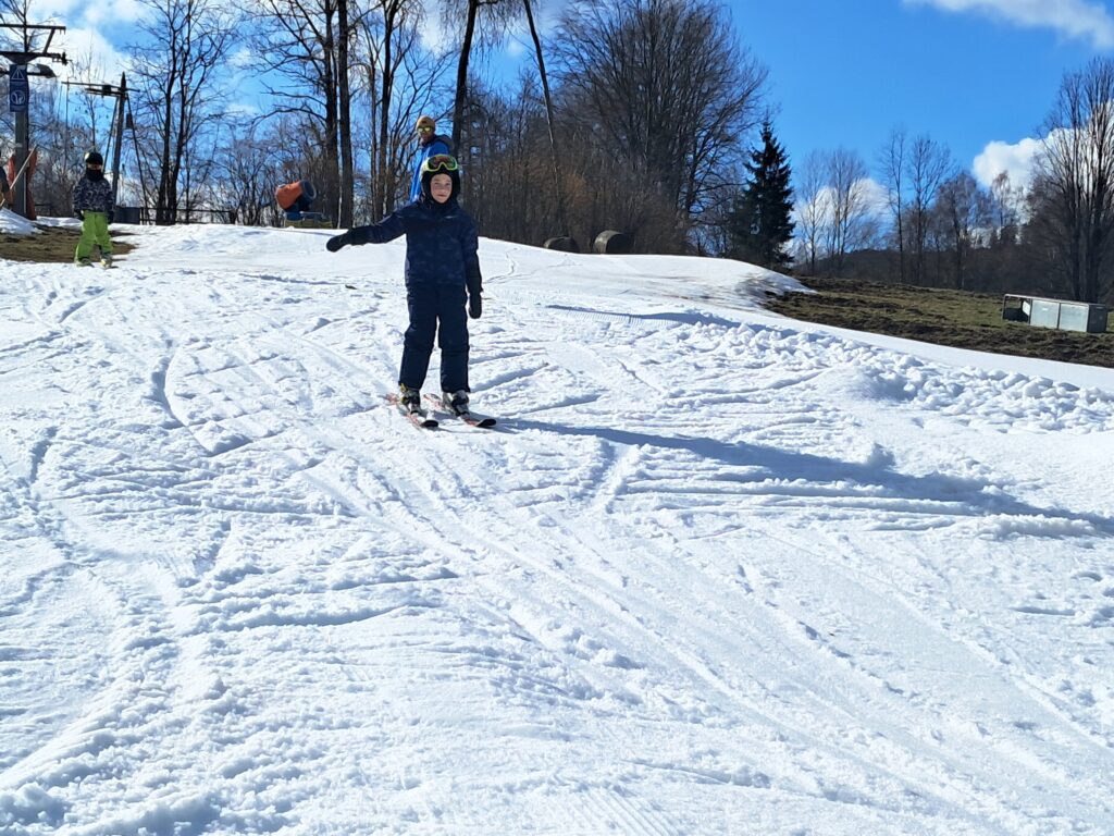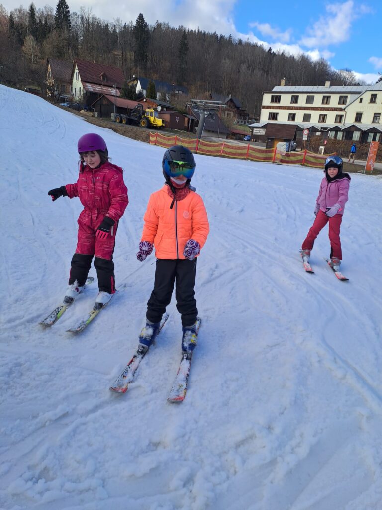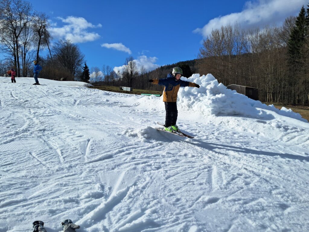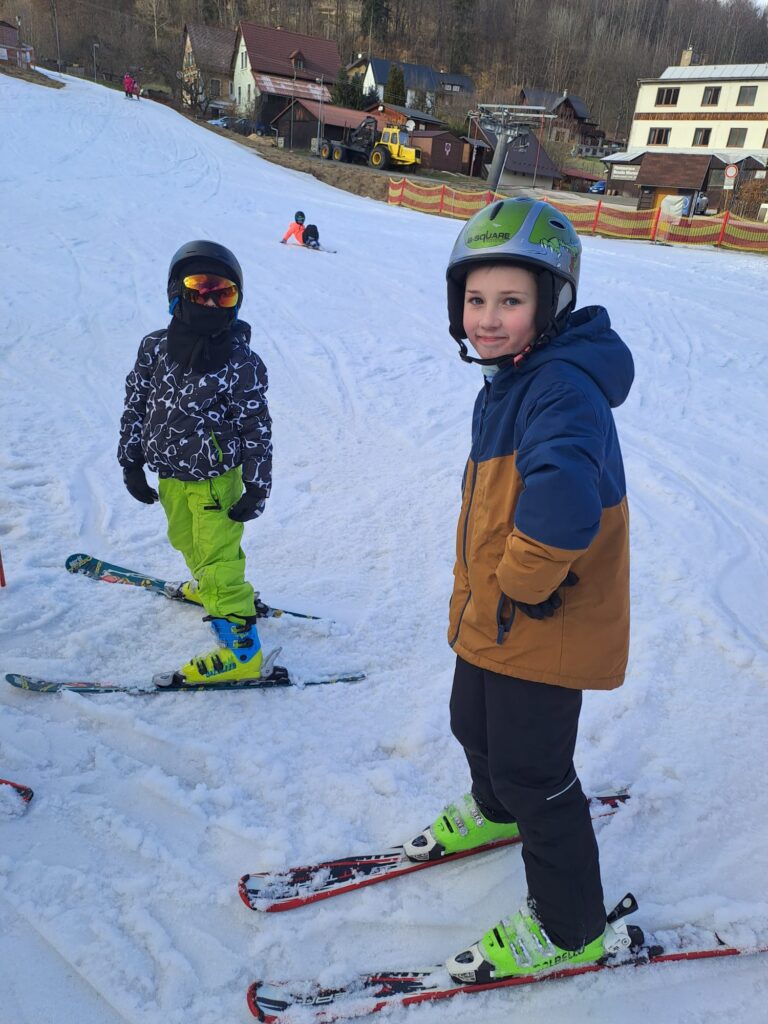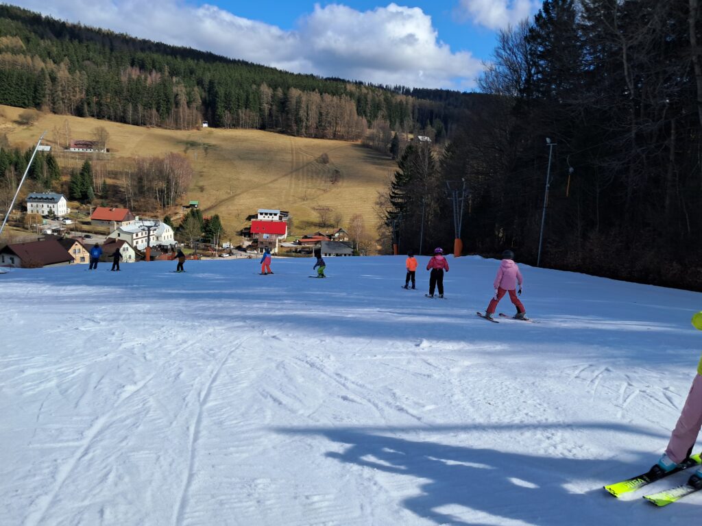 Letos jsme se už podruhé zúčastnili lyžařského kurzu v Dolním Dvoře s lyžařskou školou SKI-BARON. I přes jarní počasí byla sjezdovka skvěle připravená a děti si lyžování naplno užily. Některé si vyzkoušely i snowboarding a všechny udělaly během týdne velký pokrok.