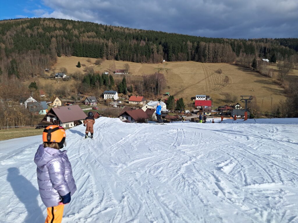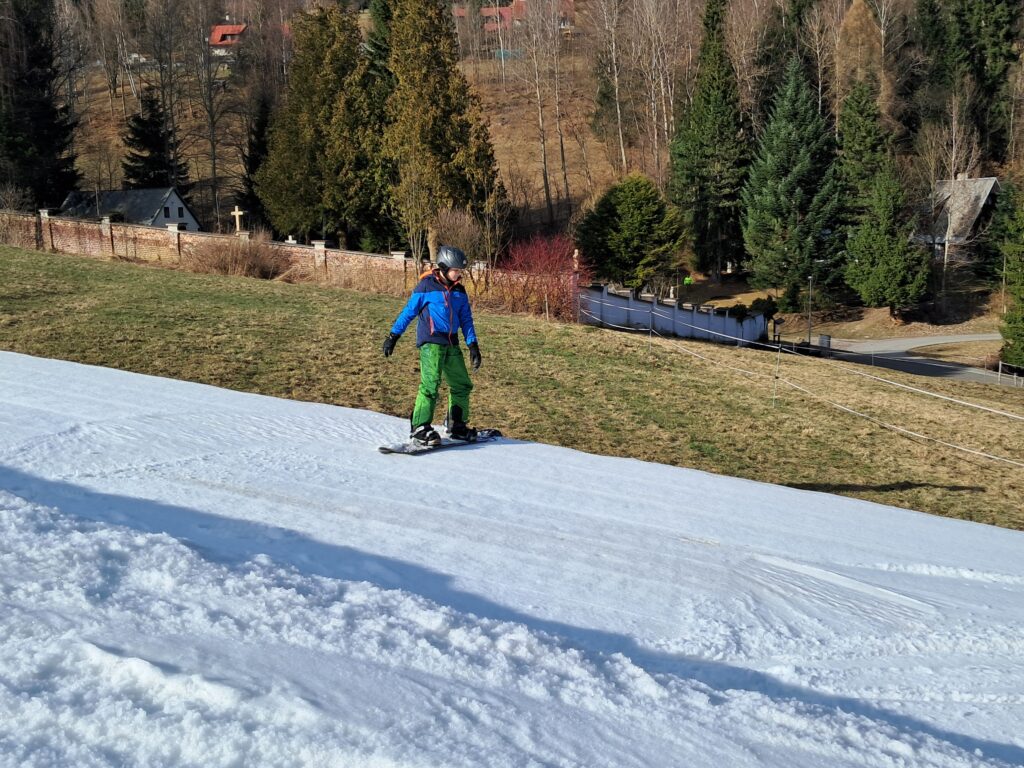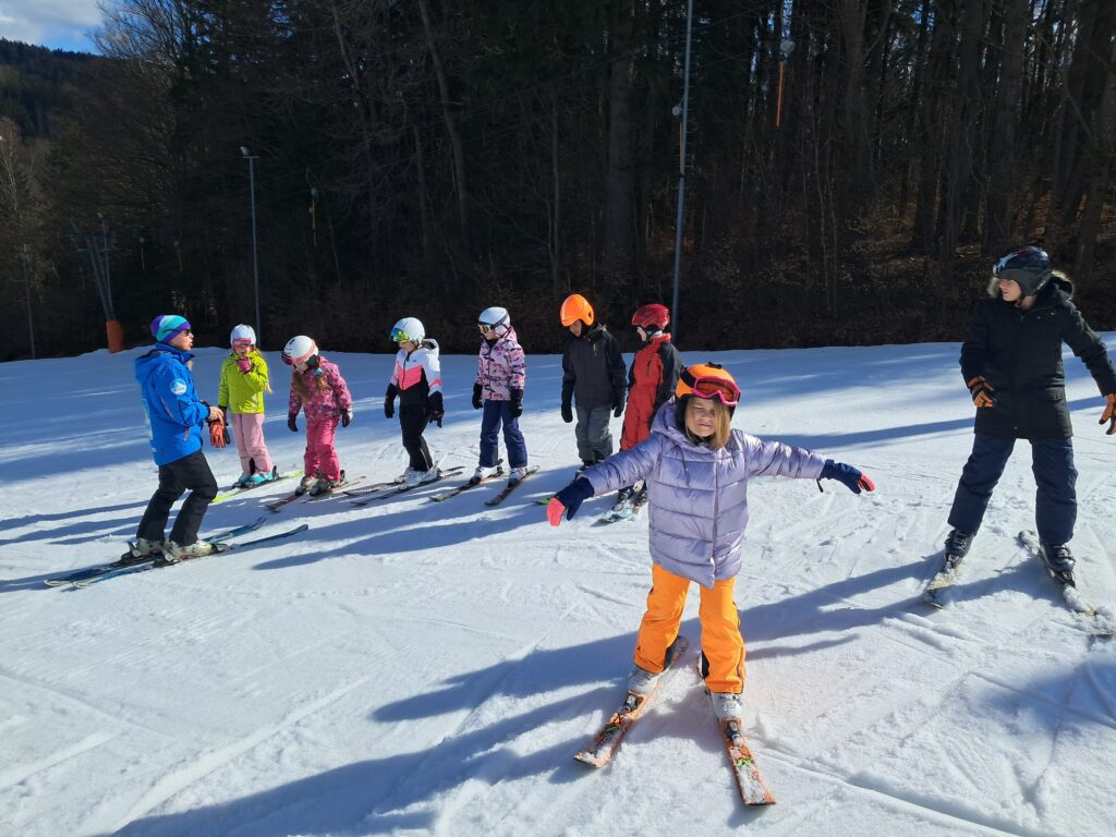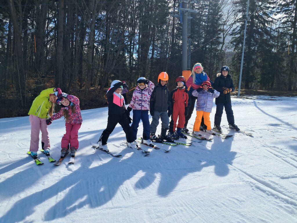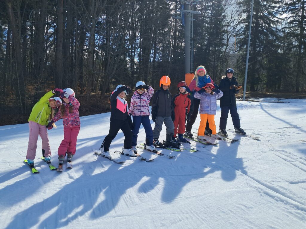 Letos jsme se už podruhé zúčastnili lyžařského kurzu v Dolním Dvoře s lyžařskou školou SKI-BARON. I přes jarní počasí byla sjezdovka skvěle připravená a děti si lyžování naplno užily. Některé si vyzkoušely i snowboarding a všechny udělaly během týdne velký pokrok.
